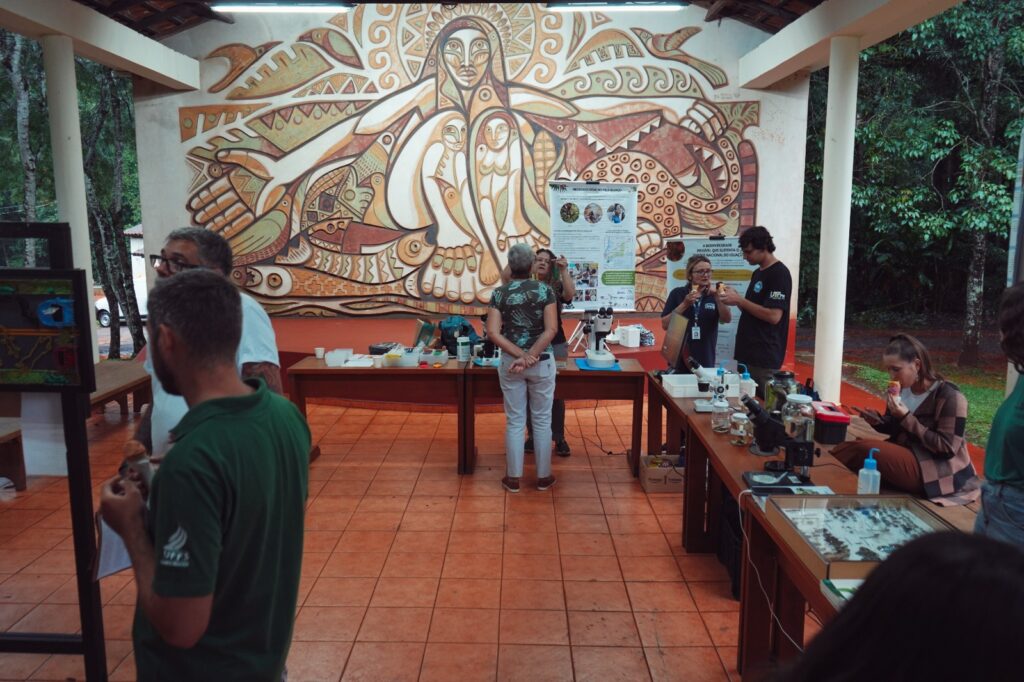 A programação também contou com a apresentação do PELD (Programa de Pesquisa Ecológica de Longa Duração), aproximando pesquisadores e visitantes dos estudos científicos realizados no parque. Além disso, a Experiência Frutos do Iguaçu levou ao público o conhecimento sobre frutos nativos e sua relevância para a biodiversidade e cadeias produtivas locais, com degustação de produtos. Assim, a arte esteve presente por meio da exposição Entre Fios e Florestas, composta por obras em string art que traduzem vivências de gestão ambiental e conservação.