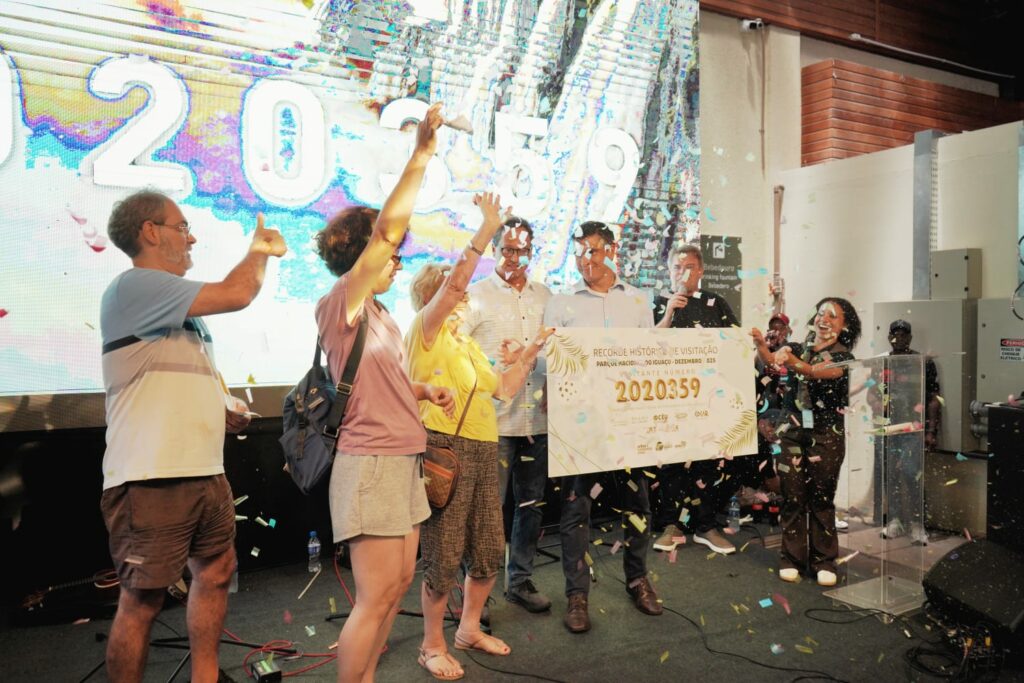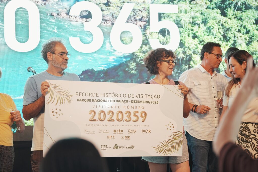 A entrada de Evelyne Crivelari Seabra, de Curitiba (PR), foi comemorada com alegria pela equipe do parque, que programou atividades especiais e música ao vivo para registrar a quebra do recorde. “Já tínhamos programado vir pra ver as Cataratas com volume cheio e trazer a família pra conhecer, e foi muito impactante ter essa surpresa. Visitar as Cataratas do Iguaçu é uma experiência que todo brasileiro tem que ter. É indescritível estar aqui, ver tudo isso de perto, porque pelas telas não temos ideia da grandiosidade que é isso aqui. É um exemplo do que o Brasil tem para oferecer para todo mundo”, conta a visitante.