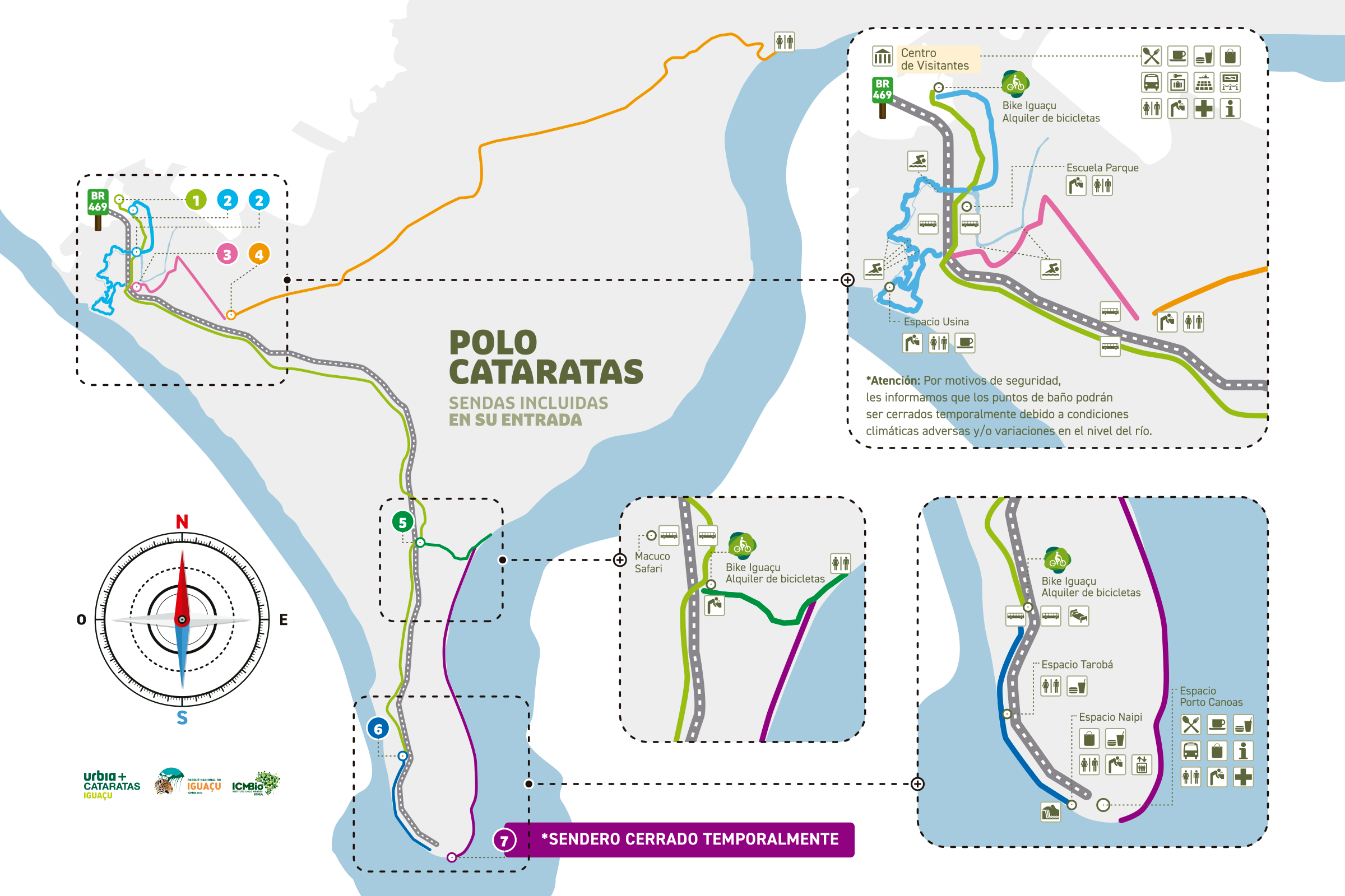 URBIA CATARATAS S.A., con CNPJ Nº 46.984.425/0001-83, concesionaria prestadora de servicios públicos de apoyo a la visita, revitalización, modernización, operación y mantenimiento de los servicios turísticos en el Parque Nacional Iguaçu (PNI), informa a continuación sobre los riesgos inherentes a la realización de actividades de SENDERISMO en el PNI: